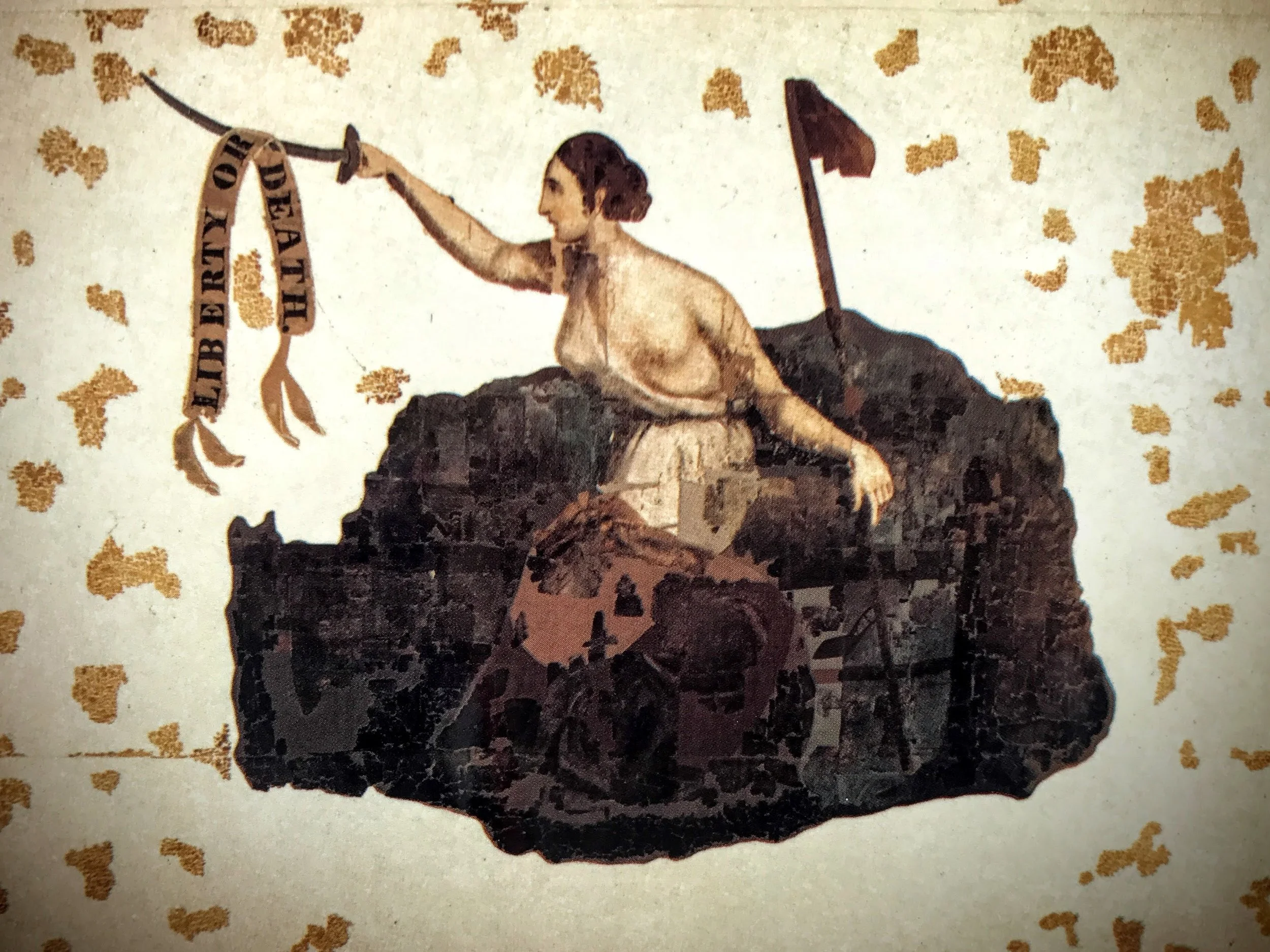 At the Alamo this weekend, an item that intrigued me was this flag illustration of Lady Liberty; another, a phrase on a plaque: "This victory in defeat was the means of uniting [...] in a determined effort to resist [...]." The concept of defeat serving a greater purpose fascinates me.